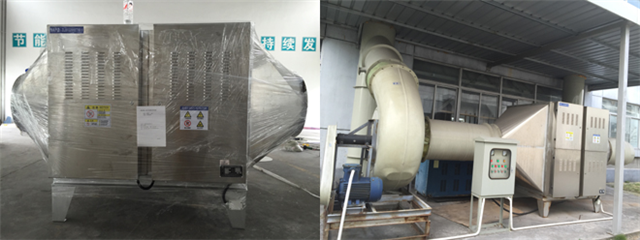 可選擇較為適宜的處理方案及相關(guān)設(shè)備。依據(jù)現(xiàn)場實(shí)踐情況分析,現(xiàn)采用廢氣處理方法:將噴漆發(fā)作的廢氣用搜集設(shè)備搜集,經(jīng)過主管道送入漆霧過濾系統(tǒng)和低溫等離子裂解設(shè)備/光催化氧化設(shè)備,較后經(jīng)過后端風(fēng)機(jī)抽風(fēng)高空合格排放。